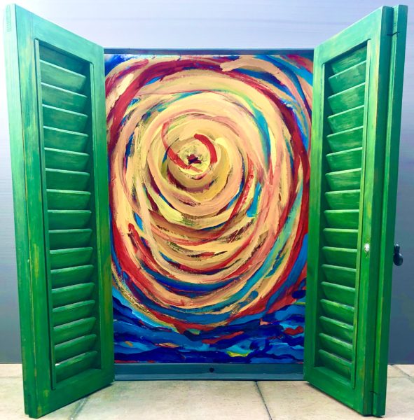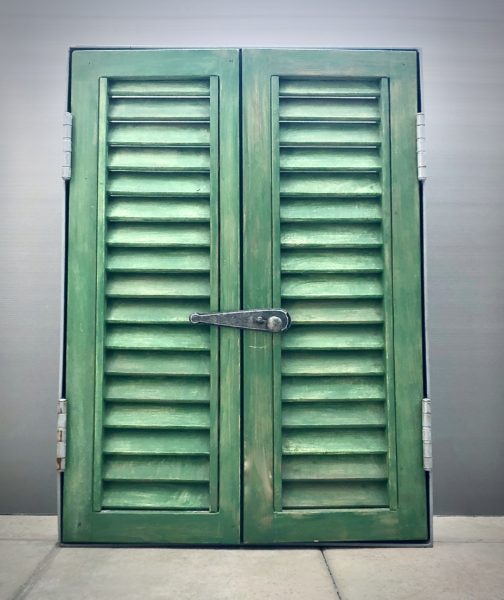 The idea to create a "window" in which to present current issues, started in 2013. I built a real metal window and wooden shutters with the possibility of placing different pictures that can go in & out and be exchanged.